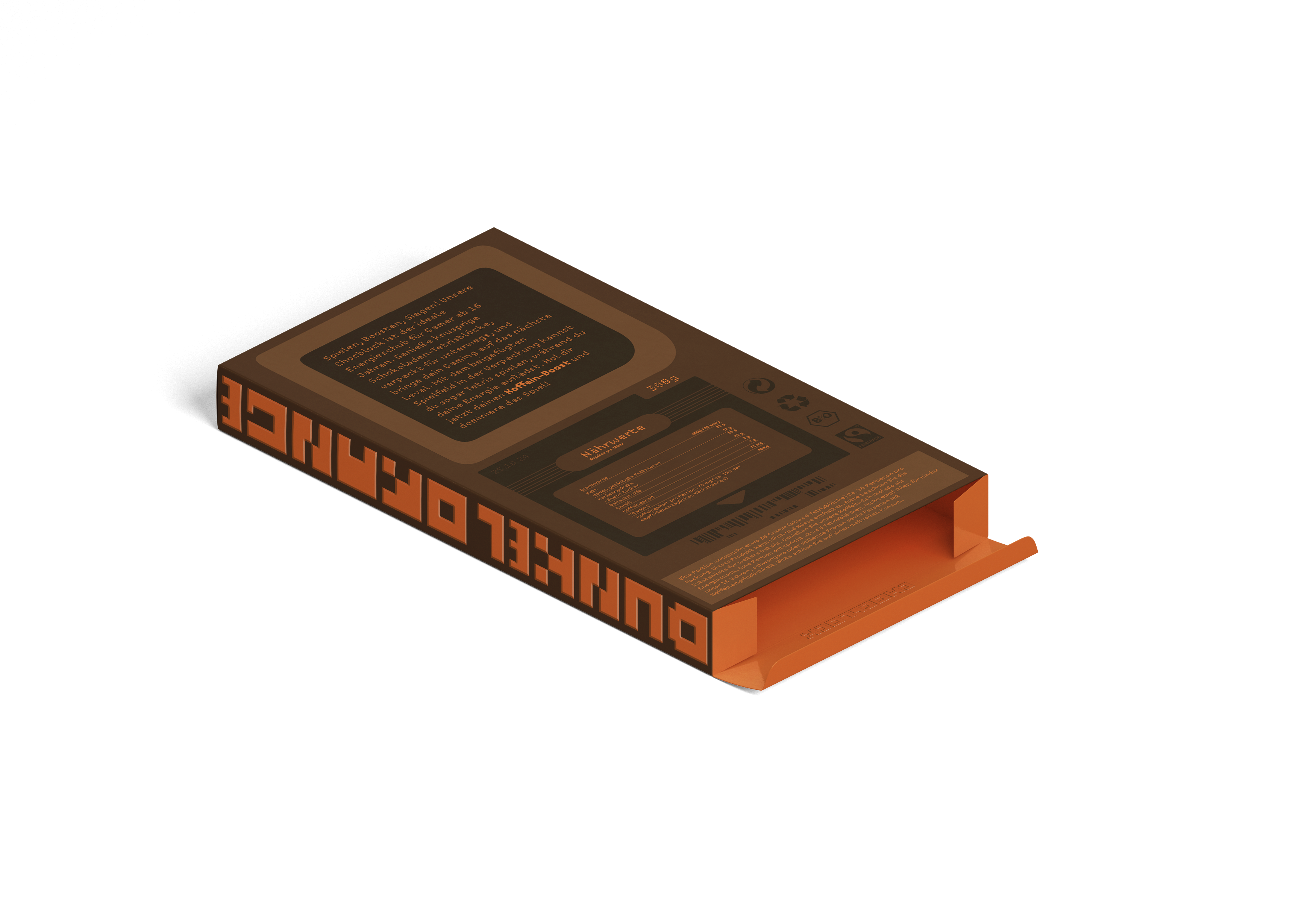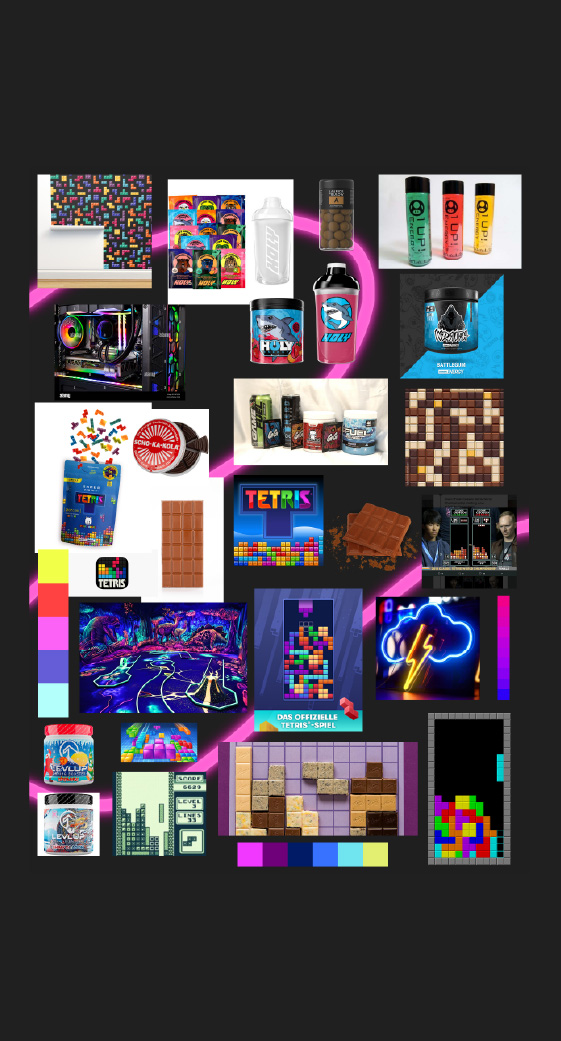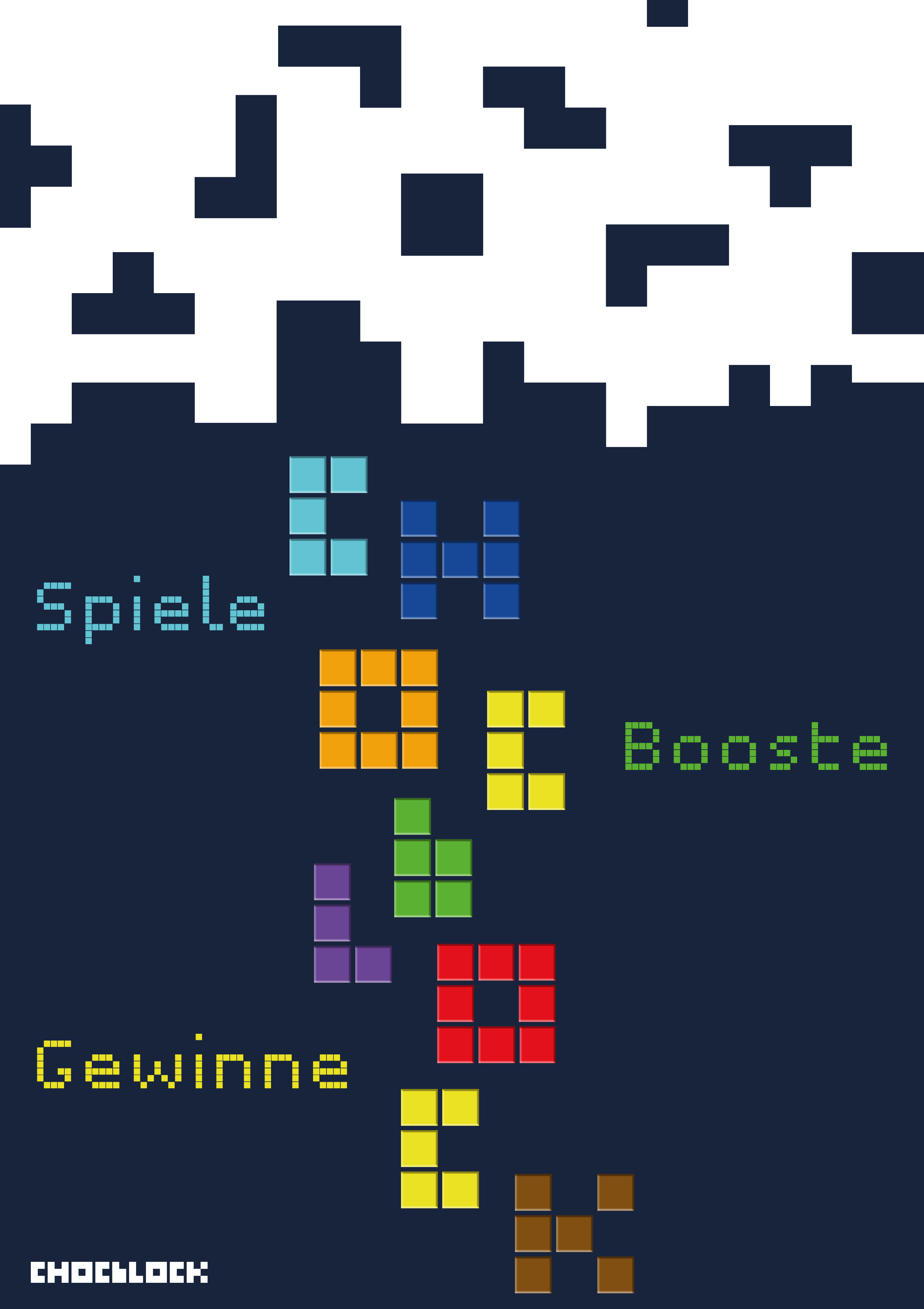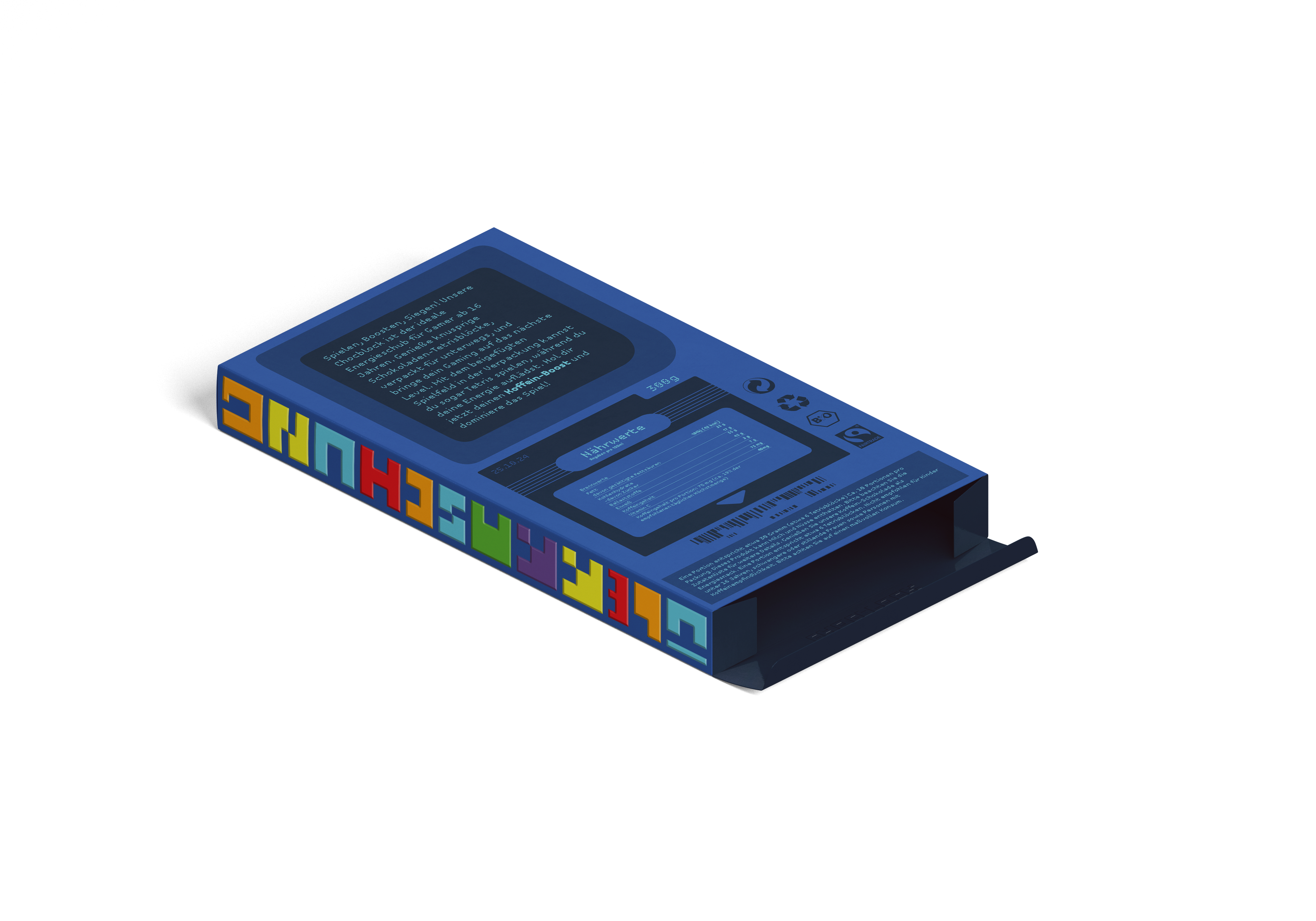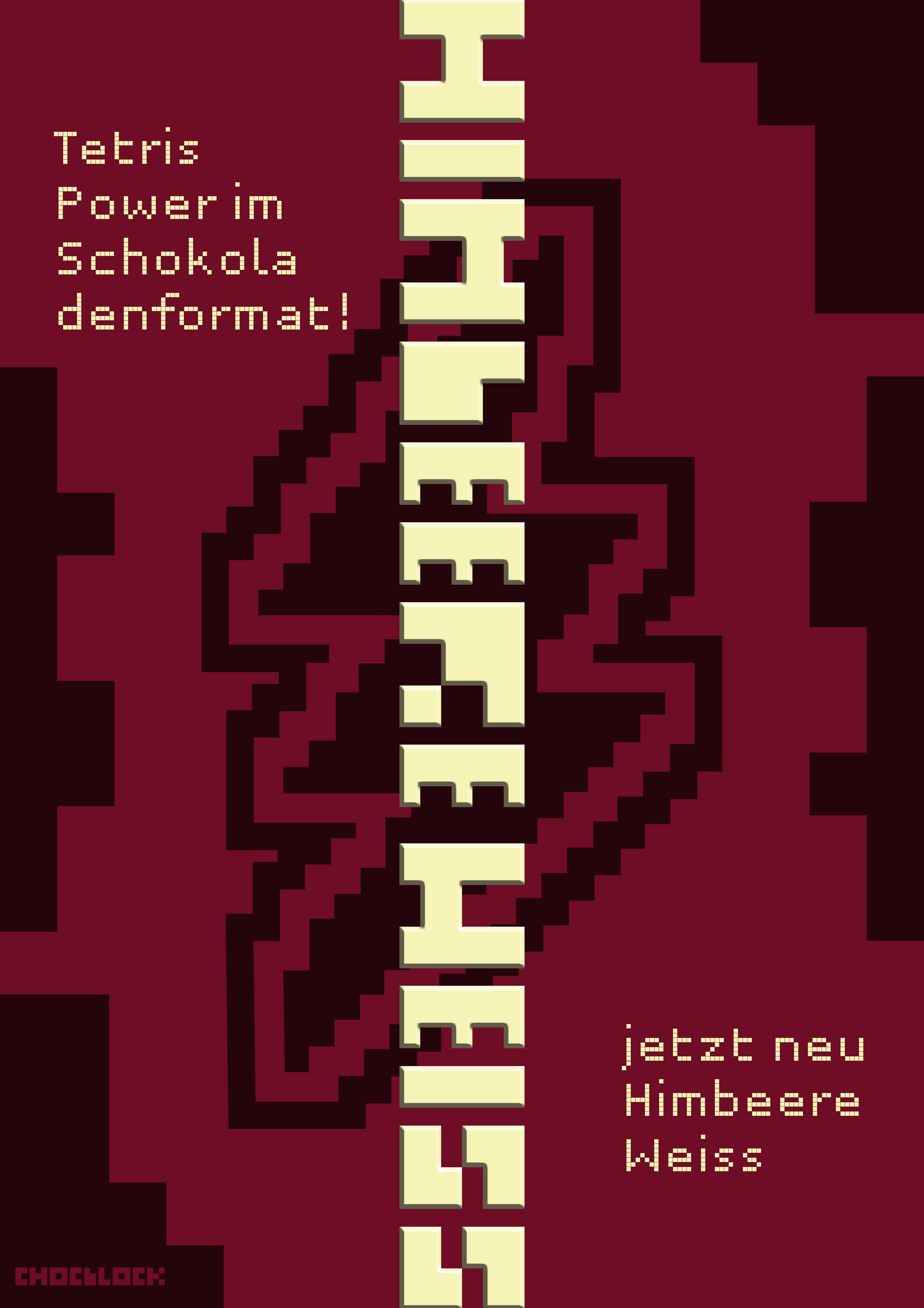 “Chocblock” is a packaging design for a chocolate brand inspired by Tetris. The packaging and logo use block-like elements combined with the classic Tetris color palette. The chocolate bars are divided into different flavors.